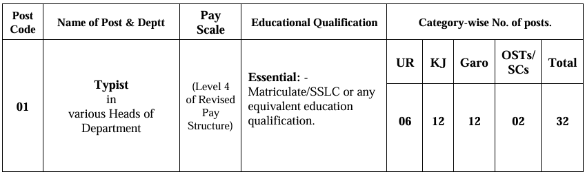 On behalf of the Govt. of Meghalaya, Meghalaya Public Service Commission (MPSC), Shillong is going the recruit Typist in various Heads of Departments. The applications are invited on (On-line mode) from the citizens of India as per the terms and conditions of the advertisement for recruitment. The interested and eligible candidates may go through the bellow details advertisement and can apply here.